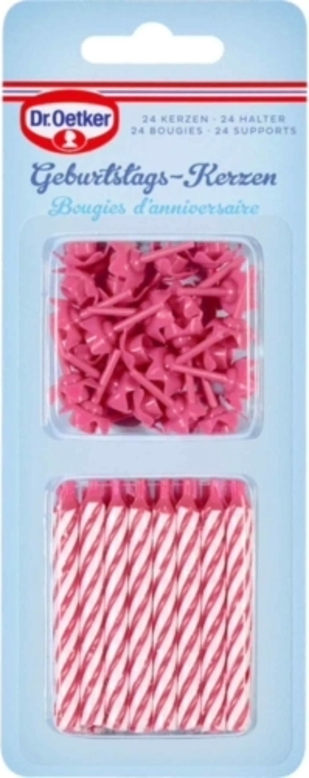 De verjaardagskaarsen van Dr Oetker bevatten 24 kaarsen en 12 houders die gemakkelijk in de taart of het gebak gestoken kunnen worden. Ideaal voor het vieren van verjaardagen of andere feesten