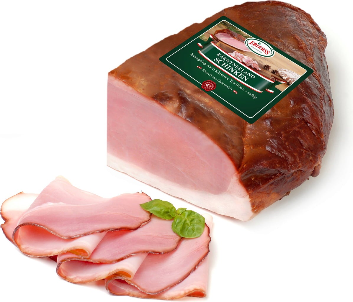 De Kärntnerlandham is gemaakt van het beste lokale varkensvlees en verfijnd met een delicate kruidenmix. Vervolgens wordt het zachtjes gerookt volgens de Karinthische traditie en zorgvuldig tot in de perfectie bereid. Dankzij het speciale rook-kookproces van Frierss blijft de sappigheid van het vlees perfect behouden.