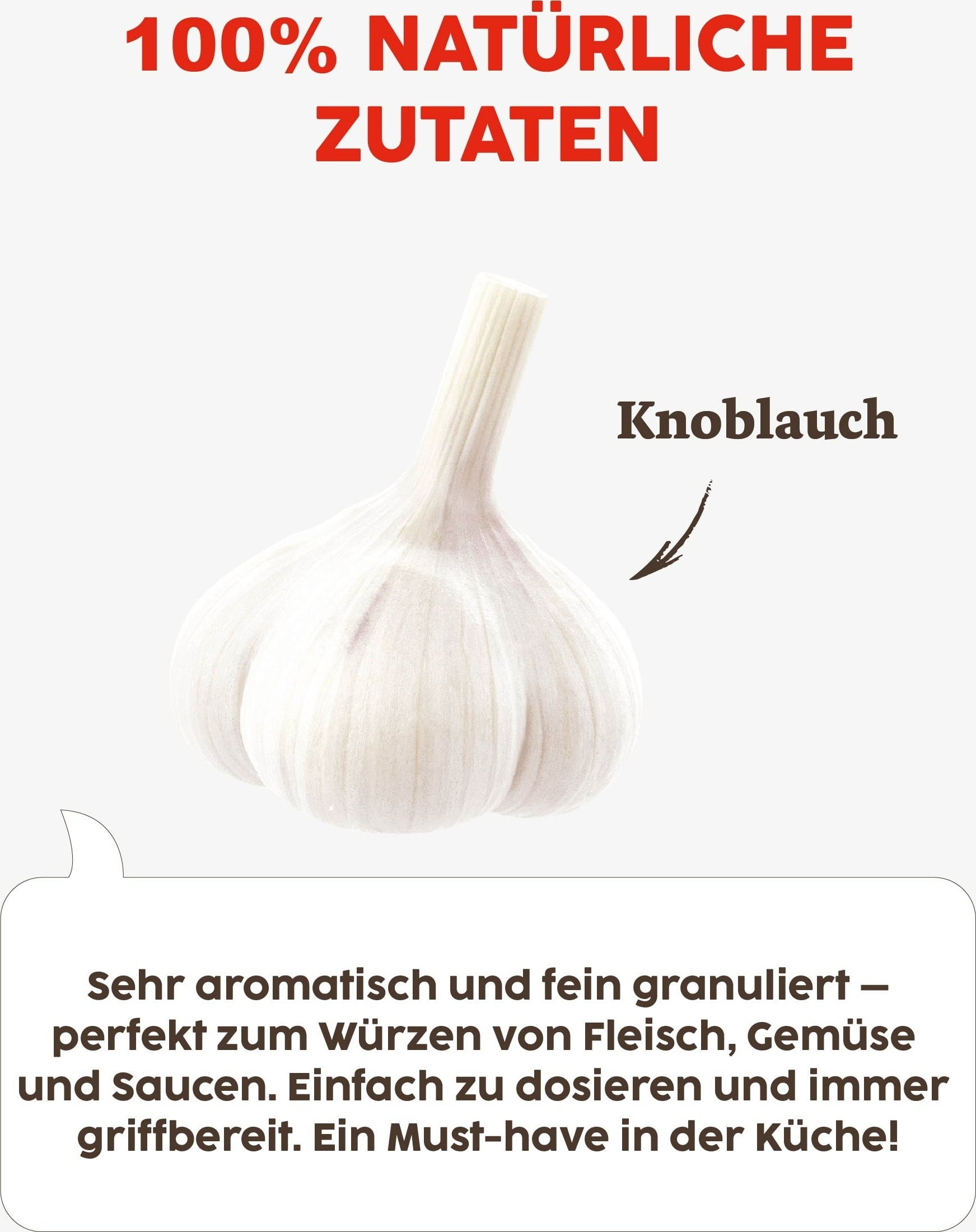 Knoflook ruikt en smaakt zoet en kruidig. Lekkere gerechten uit Italië of uit Azië profiteren altijd van deze specerij! Gebruik zoals je vers geperste knoflook zou doen.