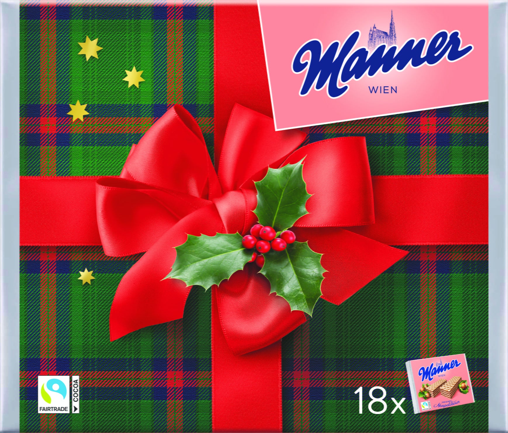 Manner Napolitaanse-Schnitten behoren tot de typisch Oostenrijkse zoetigheden en zijn geliefd bij jong en oud. Knapperige wafels en fijne hazelnootcrème zorgen samen voor dit onvergelijkbare genot dat bijna niemand kan weerstaan. Deze geweldige kersteditie heeft een feestelijke design en 18 pakjes heerlijke Napolitaanse wafels, en is het perfecte cadeau voor iedereen die van zoet houdt en fans van deze Weense specialiteit.