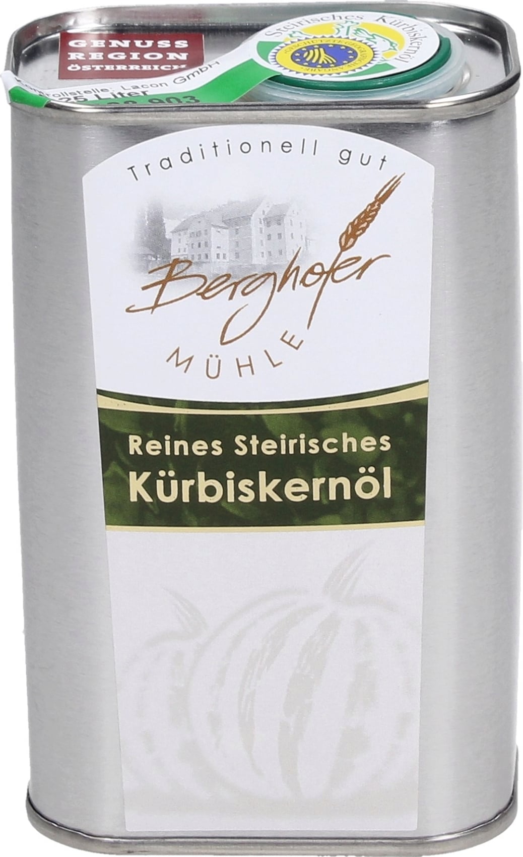 Berghofer Mühle Stiermarkse Pompoenzaadolie BGA in Kanister, 250 ml