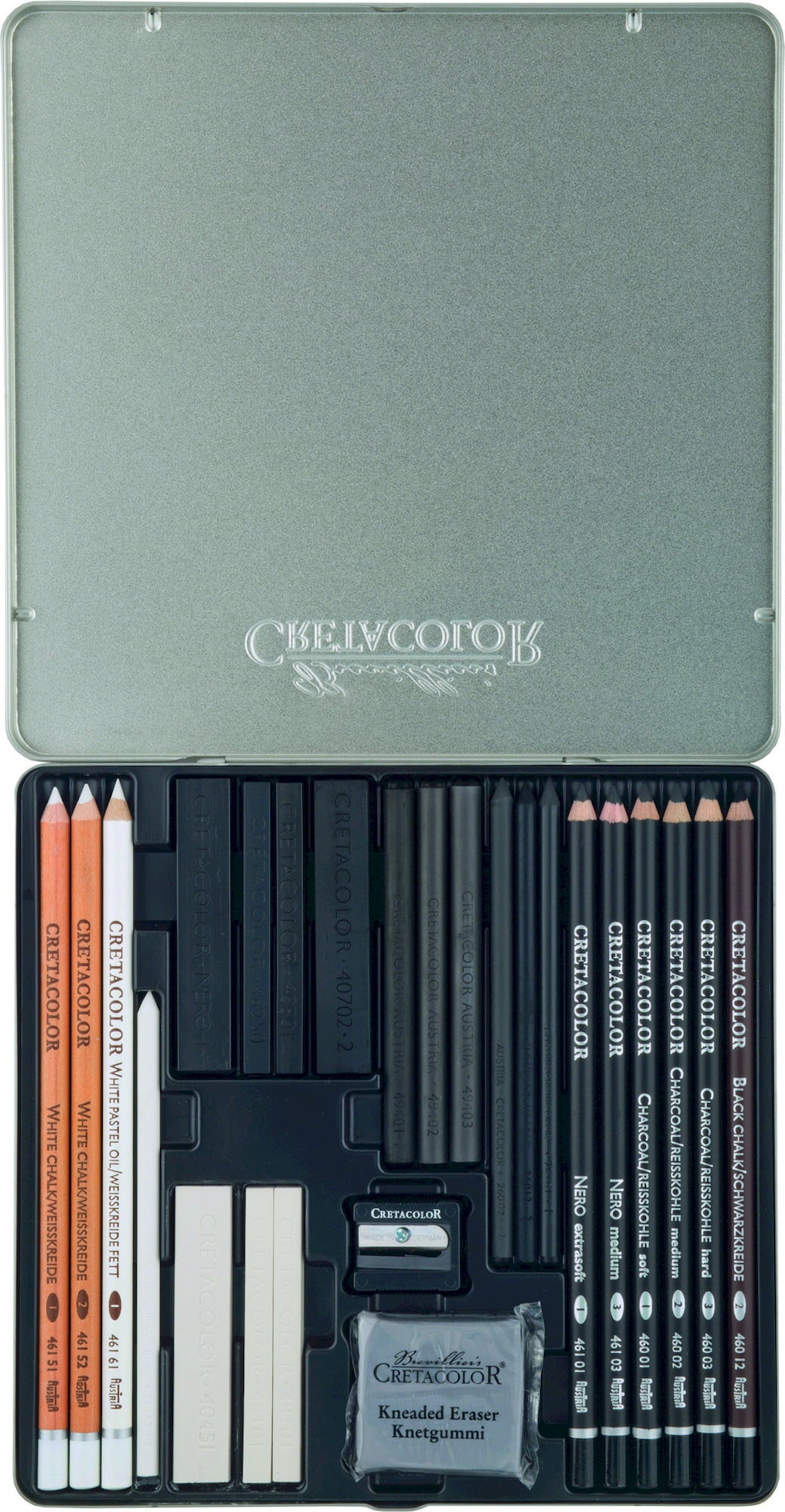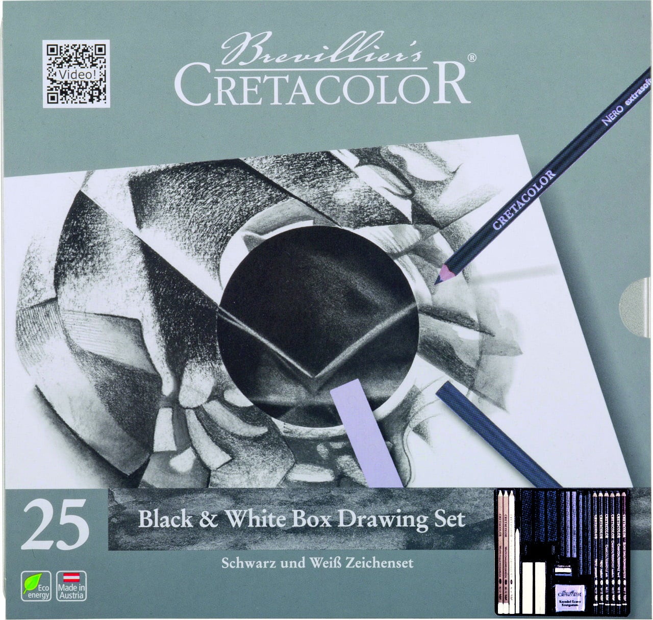 CRETACOLOR Black & White Box, 25-piece set metal case