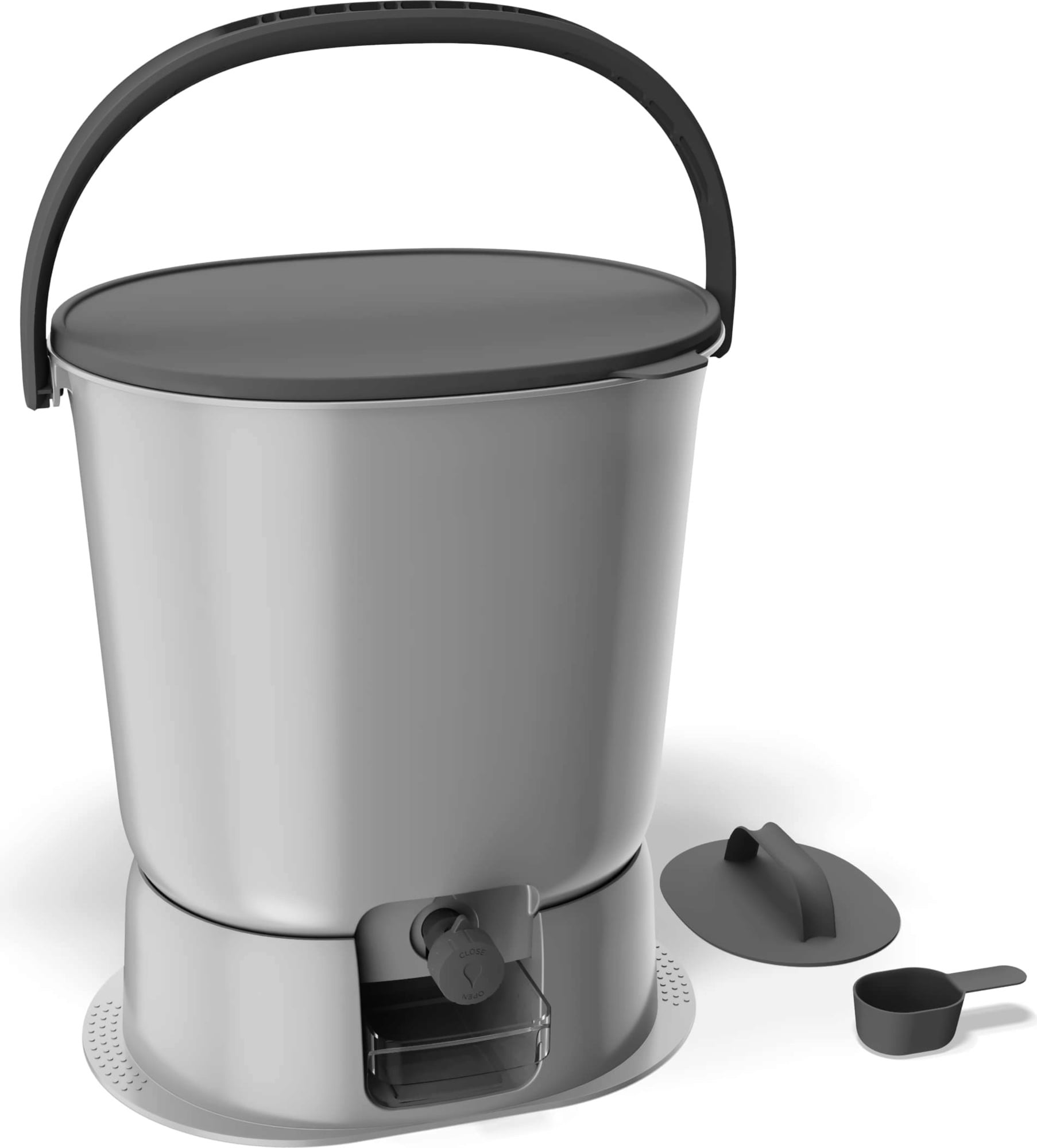 Met deze keukencomposter kun je je keukenafval recyclen en omzetten in hoogwaardige mest en compost. Het enige wat je nodig hebt is EM actief (EMa) en Bokashi gedroogd om te strooien. Zo kun je thuis eenvoudig en volledig geurloos mest produceren volgens de Bokashi-methode.