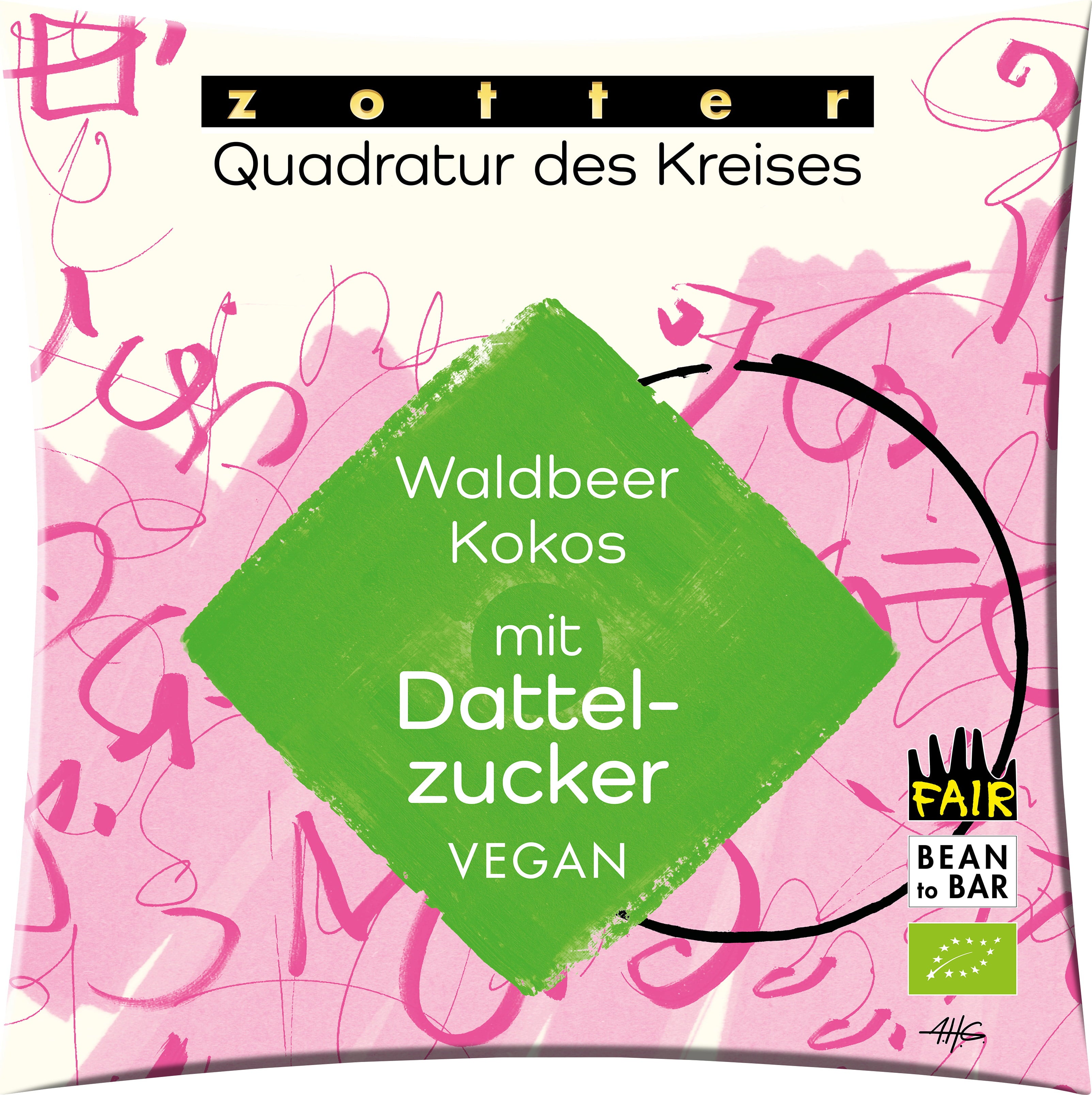Zotter Schokoladen Organic Squaring the Circle - Forest Berry Coconut Circle with Date Sugar, 70 g