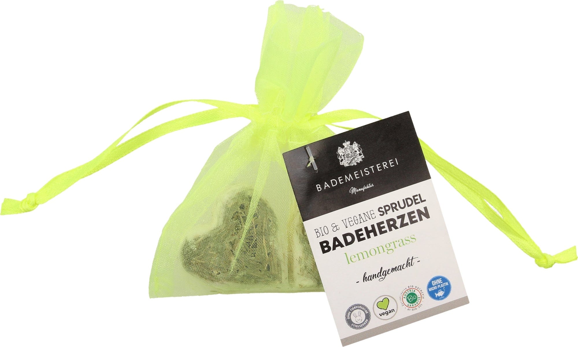 Bademeisterei Bio i Vegan - musujące kule - serca do kąpieli, Trawa cytrynowa (15 g)