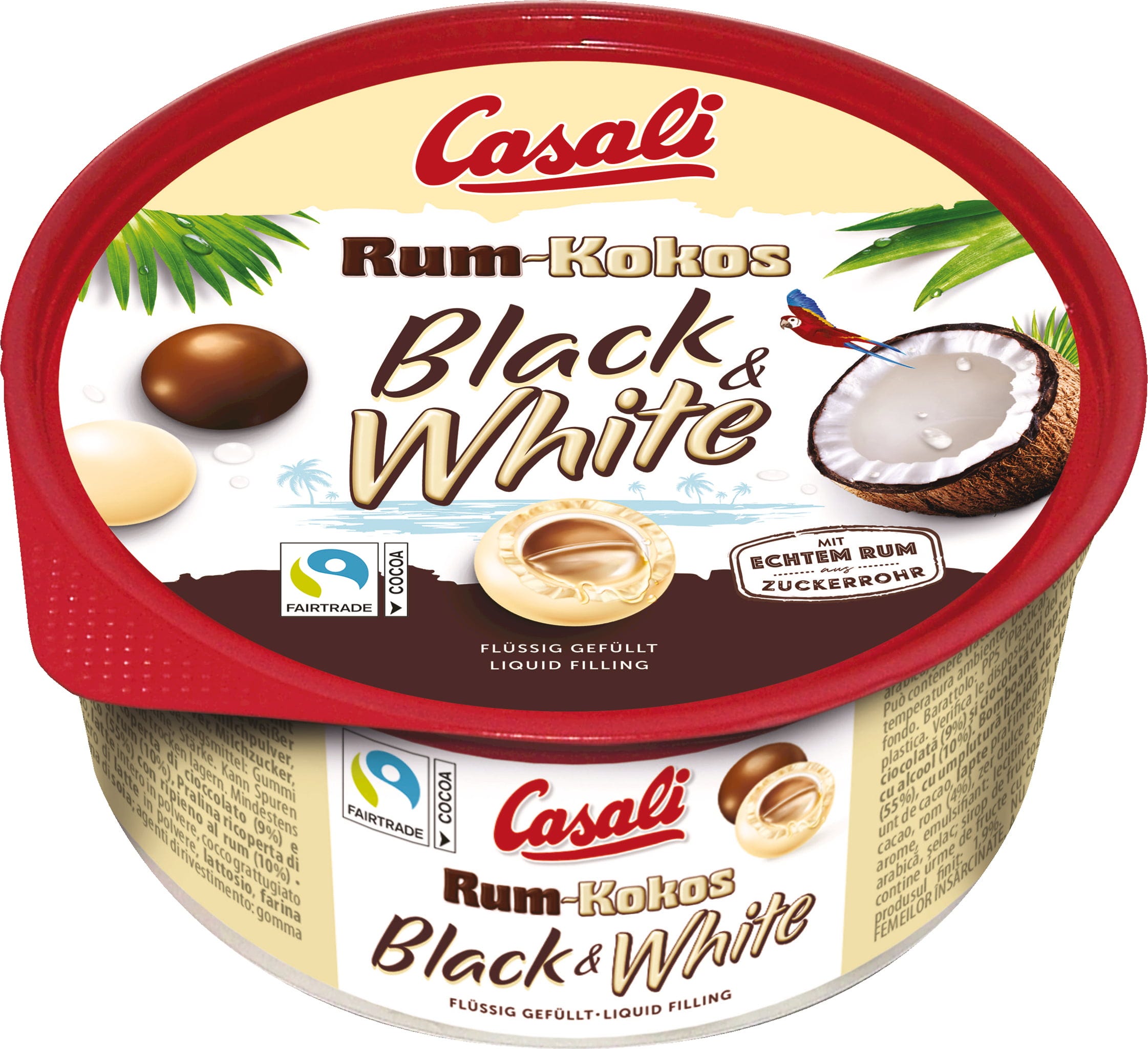 Dla tych, którzy desperacko szukali wyboru, oto rozwiązanie! Zamykana puszka Casali Rum-Kokos Black & White zawiera dwa rodzaje pysznych kulek rumowych: