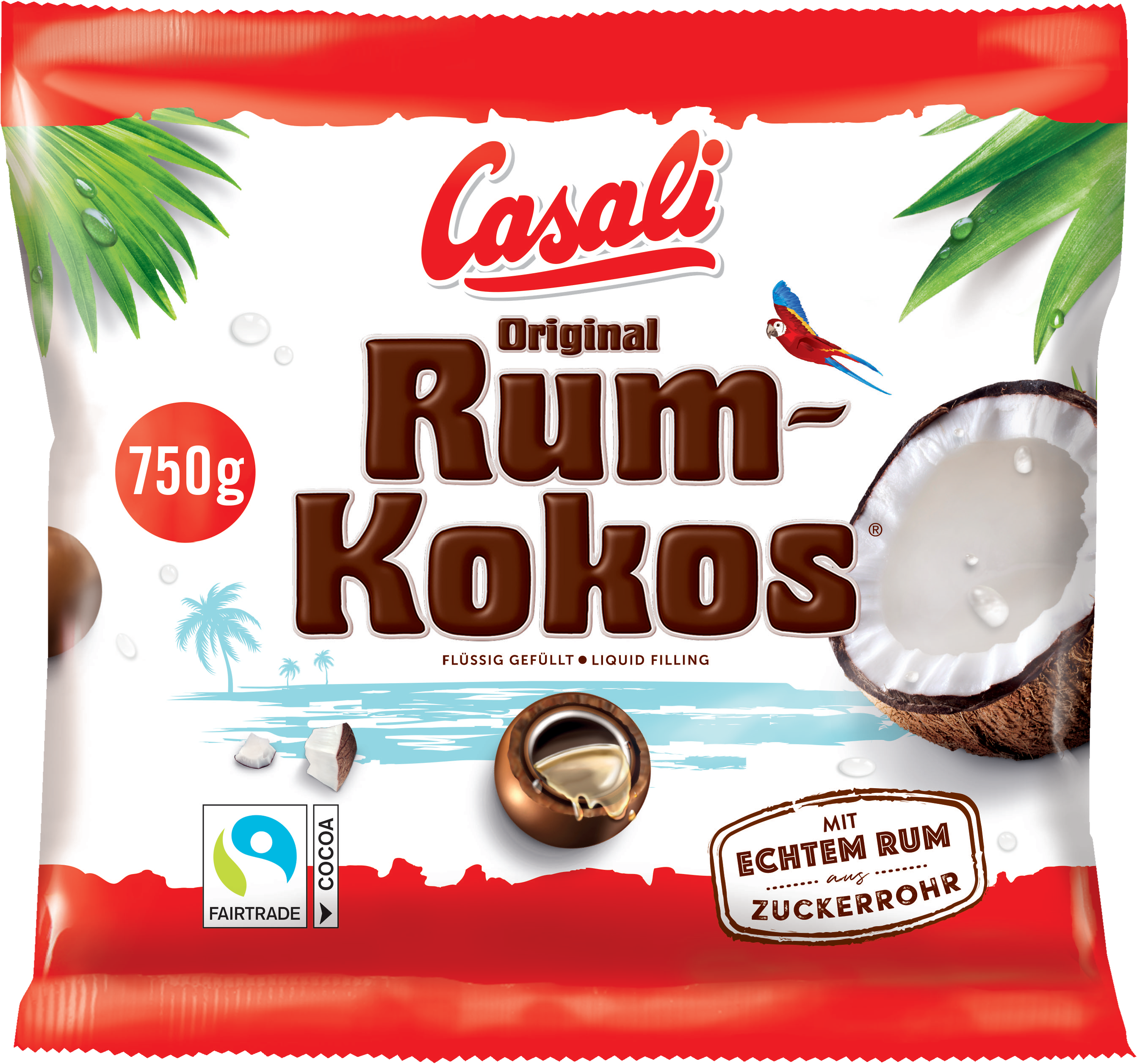 Słodki klasyk z domu Casali z dodatkową dawką karaibskich uczuć. Wewnątrz delikatnie topiących się czekoladowych kulek znajduje się płynny rdzeń z karaibskiego rumu, który jest pokryty warstwą drobnych wiórków kokosowych. Stwarza to wyjątkową przyjemność, która budzi letnie uczucia.