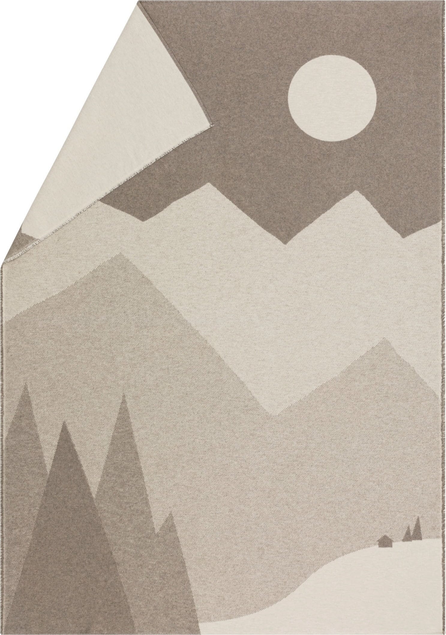 Stylizowany motyw księżycowego krajobrazu górskiego na lekkim kocu flanelowym natychmiast tworzy przytulną atmosferę. Czy to w salonie, czy jako dodatkowe źródło ciepła w łóżku - zawsze stanowi wizualną atrakcję.