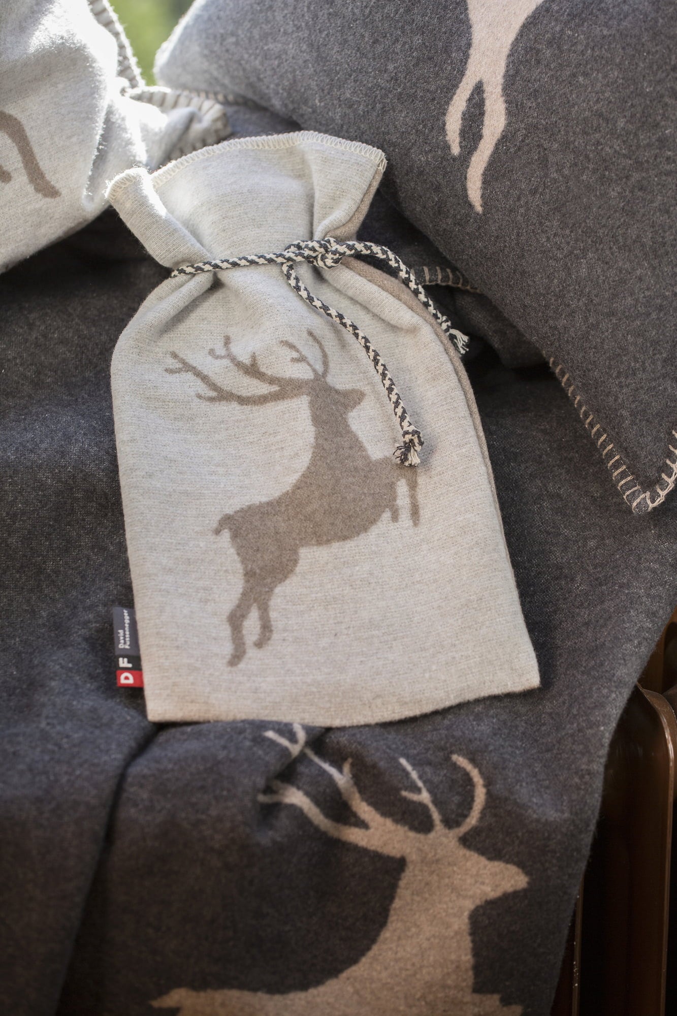 Przytulne ciepło dla Twojego domu. Sprawdzona pod względem bezpieczeństwa butelka na gorącą wodę z przytulnym pokrowcem z flaneli bawełnianej i wspaniałym wzorem jelenia zapewnia przytulne godziny w łóżku i na kanapie. Dzięki subtelnym, ciepłym kolorom doskonale pasuje do każdego wnętrza, a jednocześnie przyciąga wzrok.