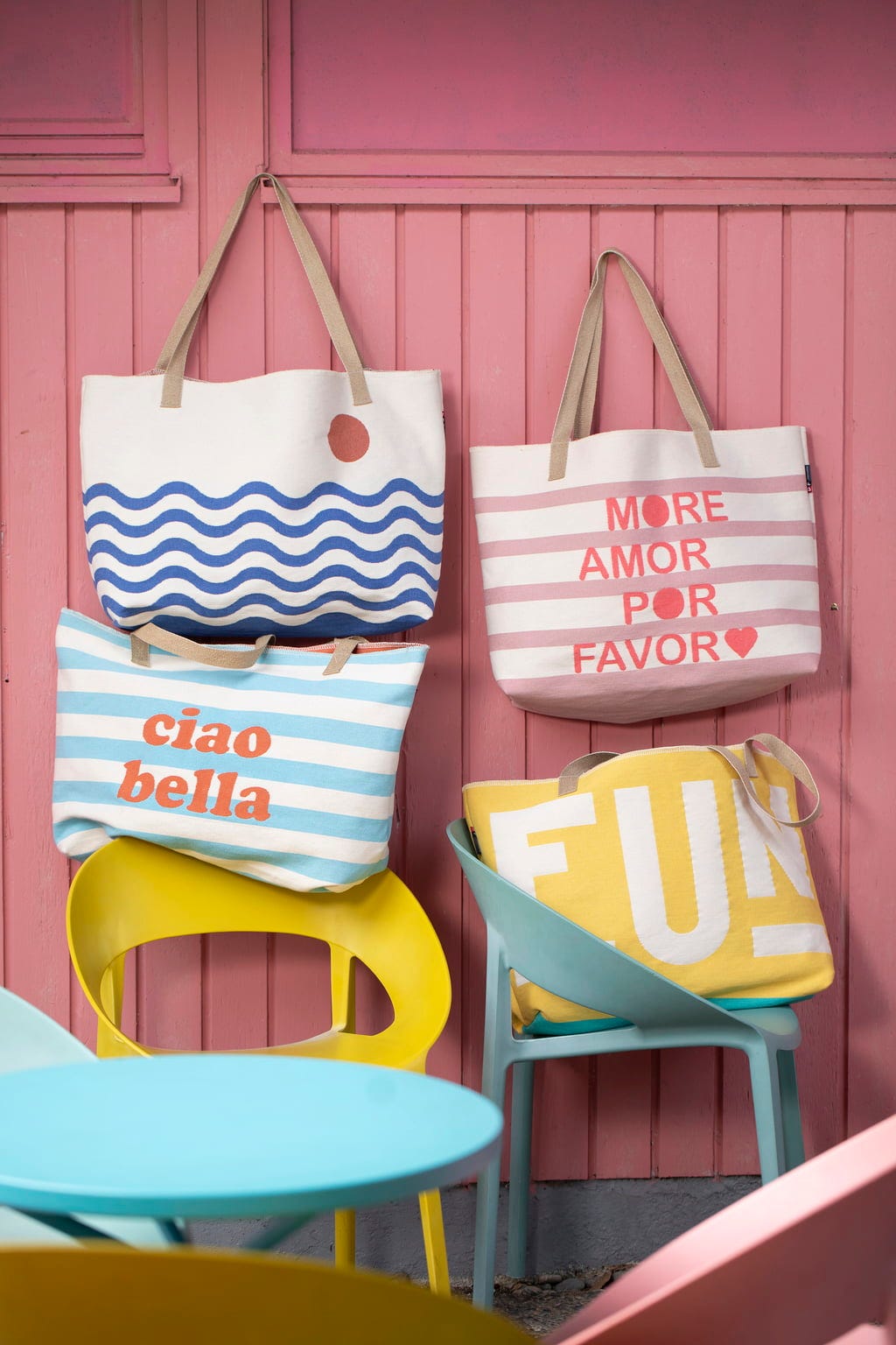 Ta wytrzymała torba nie tylko oferuje wystarczająco dużo miejsca na krem do opalania, butelki z wodą, przekąski i wszystko, czego potrzebujesz na cały dzień, ale jej wesoły, letni design z pewnością przyciągnie uwagę! Wykonana z wytrzymałych materiałów, jest również bardzo trwała, dzięki czemu będziesz mógł cieszyć się nią przez długi czas!