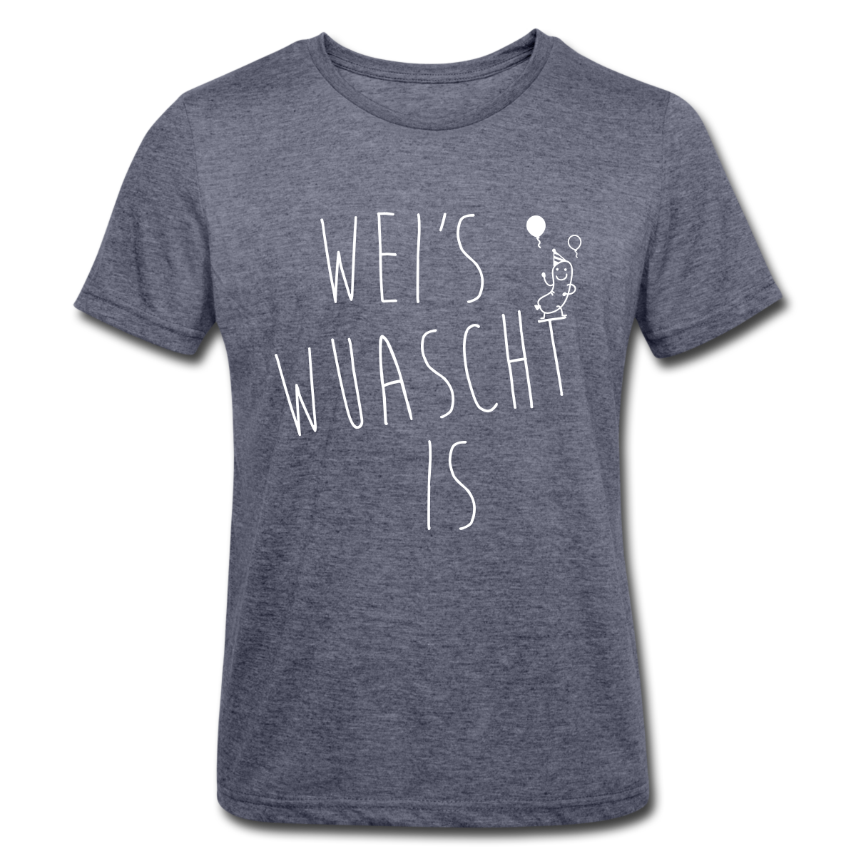 Gscheade Leibal Męska koszulka z polibawełny „Wei´s wuascht is”, granatowa nakrapiana