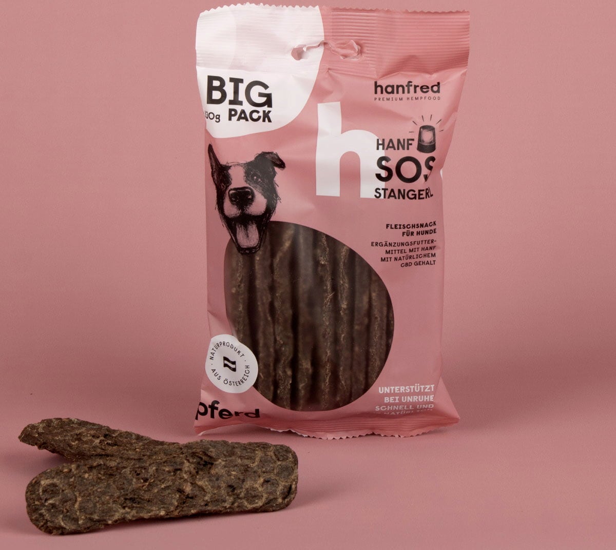 Niezależnie od tego, czy jest to podróż samochodem, głośne dźwięki czy wizyta u weterynarza - z pałeczkami SOS jesteś dobrze przygotowany. Praktyczne pałeczki do żucia wykonane z mięsa końskiego i proszku konopnego są idealne w podróży lub w nowych sytuacjach, w których potrzebna jest znajoma przekąska.