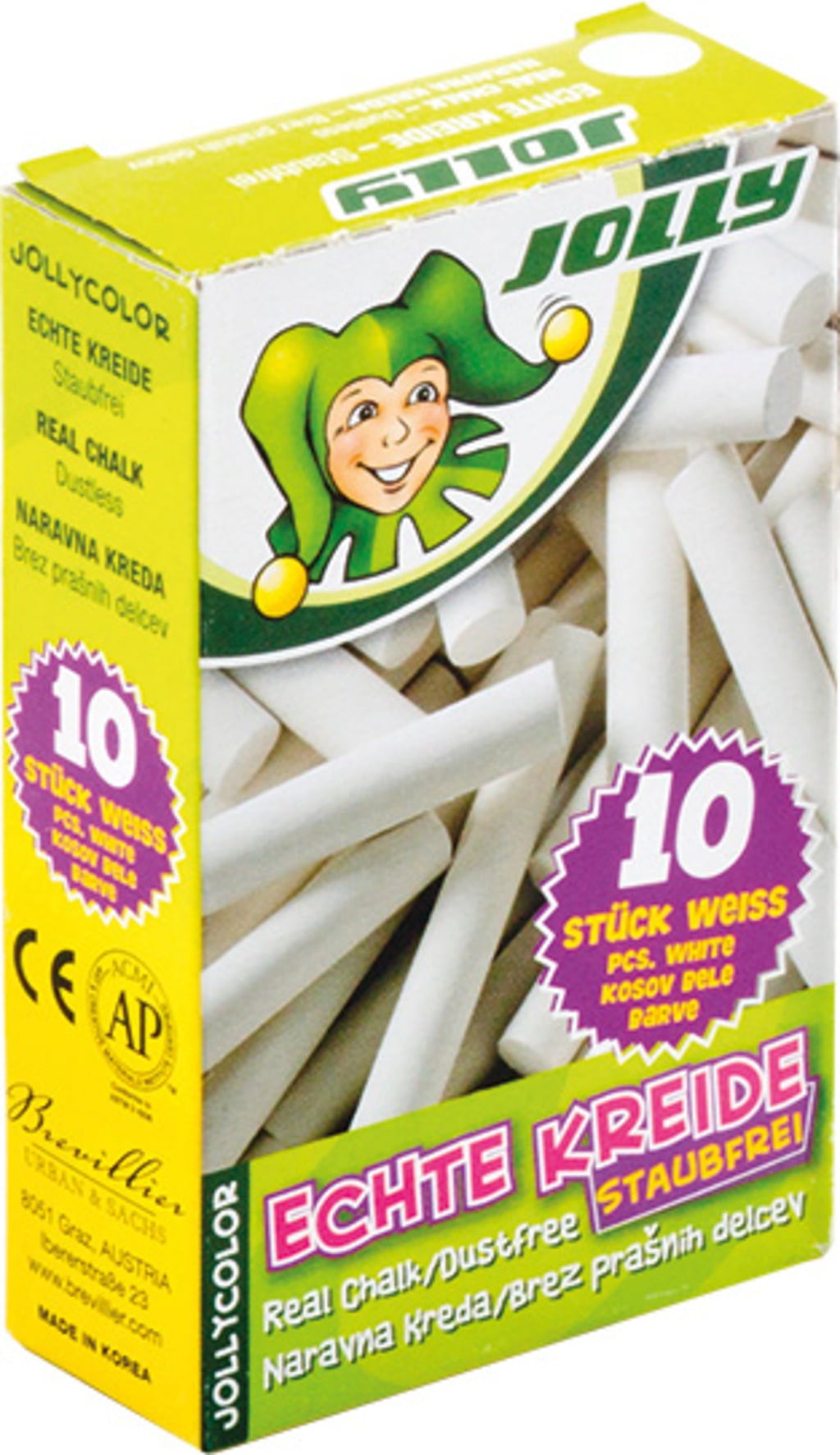 Kreda Jolly to 100 procent węglanu wapnia. W przeciwieństwie do siarczanu wapnia, który był często używany do kredy, nie kurzy i można go łatwo usunąć z tablicy. Niezależnie od tego, czy chodzi o tablicę szkolną czy bistro, kreda Jolly jest zawsze idealnym wyborem.