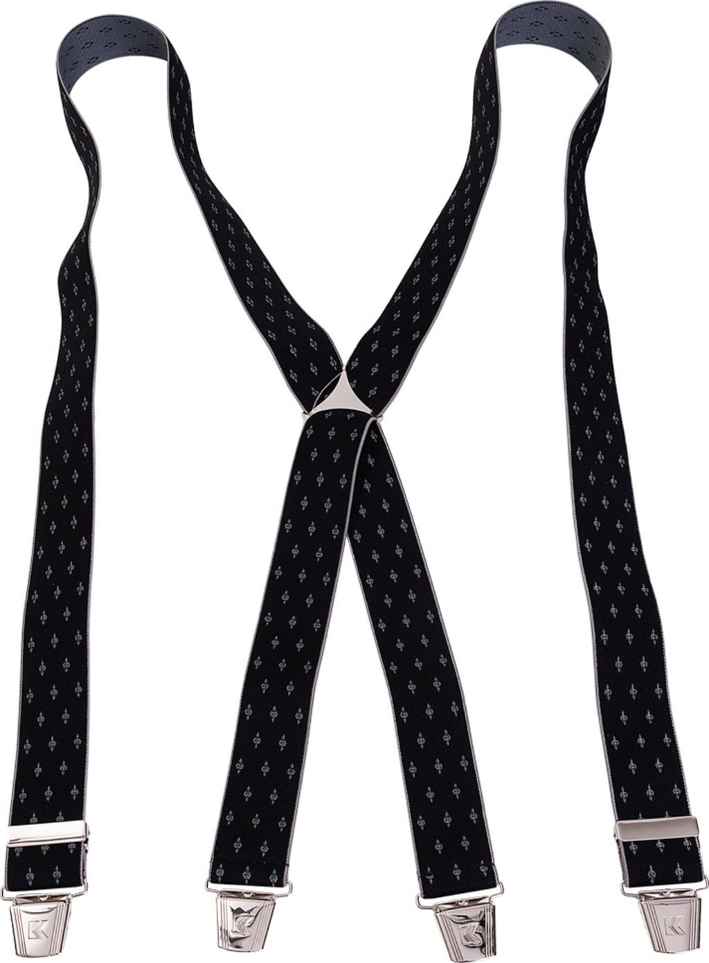 Te subtelnie wzorzyste, eleganckie czarne szelki są idealnym dodatkiem na specjalne okazje. 4 bardzo mocne klipsy zapewniają doskonałe trzymanie. Szelki o szerokości 35 mm można bardzo łatwo regulować dzięki kształtowi litery X i suwakowi, zapewniając idealne dopasowanie