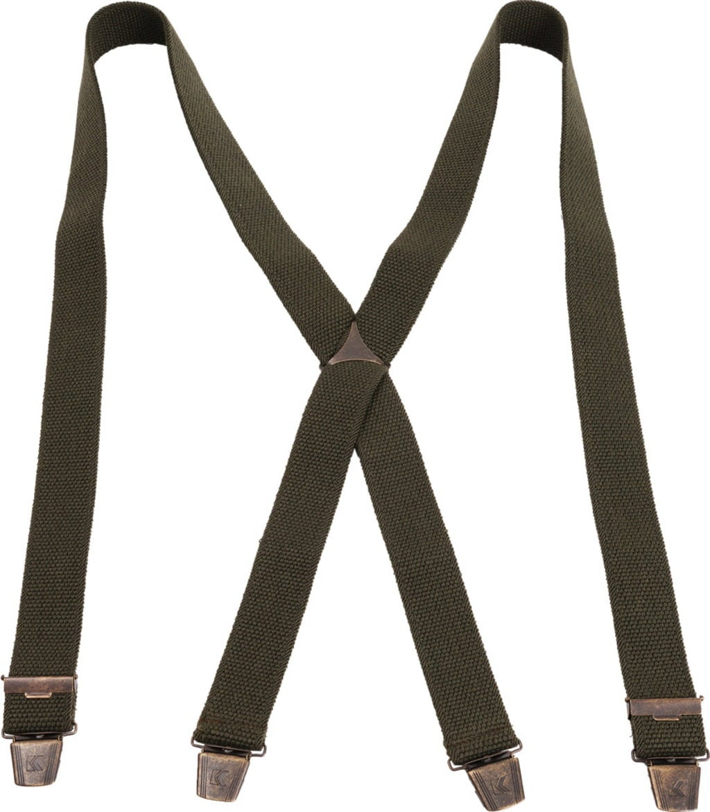 Te szelki o szerokości 35 mm wykonane z zielonego płótna bardzo dobrze pasują do spodni skórzanych - lederhosen. 4 bardzo mocne klipsy, z których Karlinger jest tak znany, zapewniają doskonałe trzymanie. Krój X i regulowany suwak gwarantują indywidualny komfort.