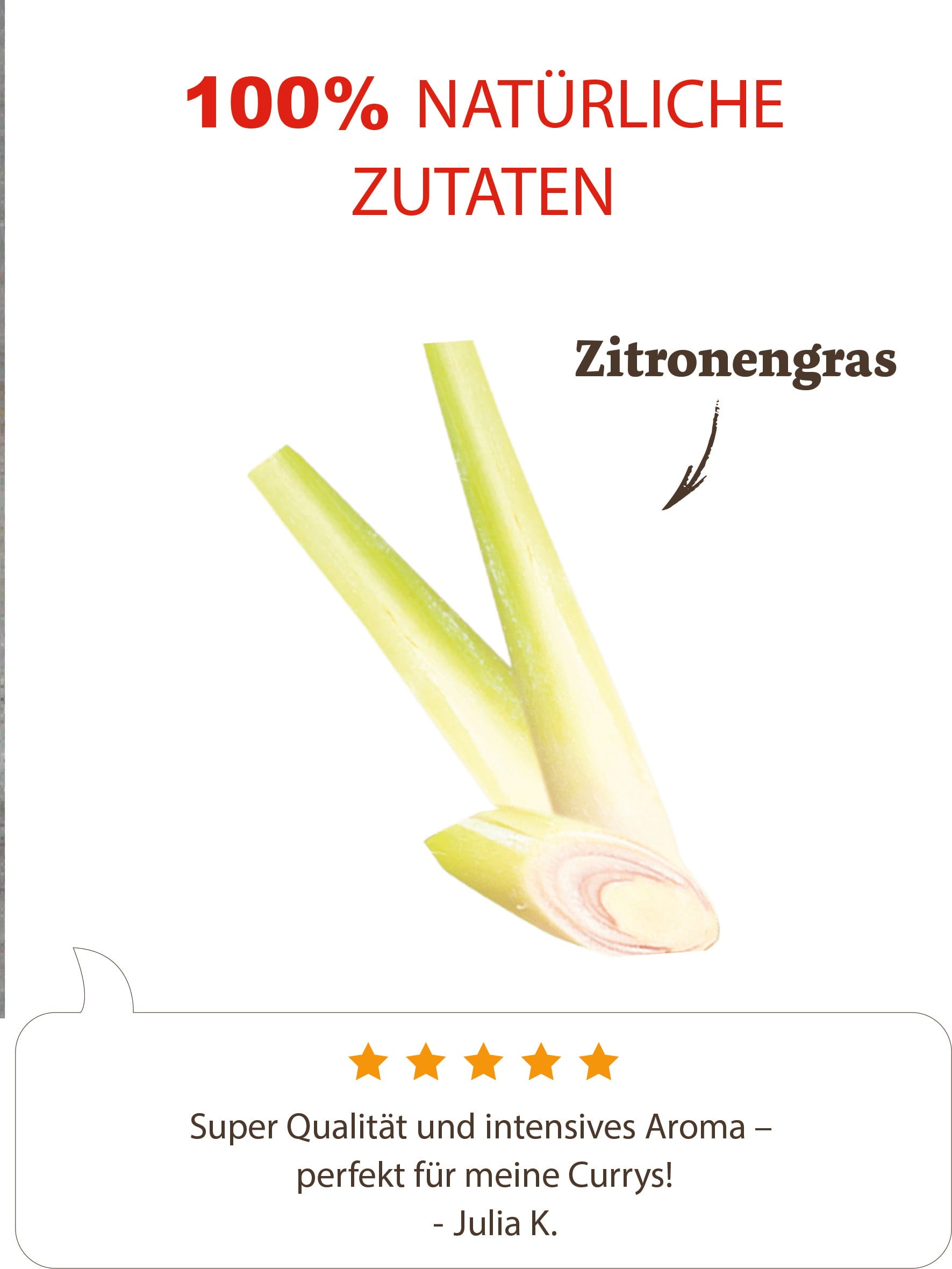 Orzeźwiająca trawa cytrynowa doskonale dopełni Twoje danie dzięki cytrynowemu, lekko pikantnemu smakowi. Trawa cytrynowa jest doskonała do curry, sałatek, deserów i zup.