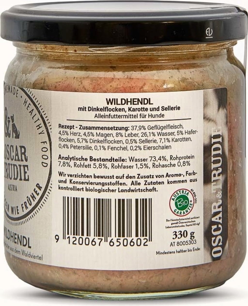 Bio-Wildhendl to podstawowa karma dla psów produkowana w Austrii i objęta 100% gwarancją ekologiczną. Wszystkie składniki pochodzą z kontrolowanych upraw ekologicznych, są pozyskiwane w sposób naturalny i mają wyśmienity smak.