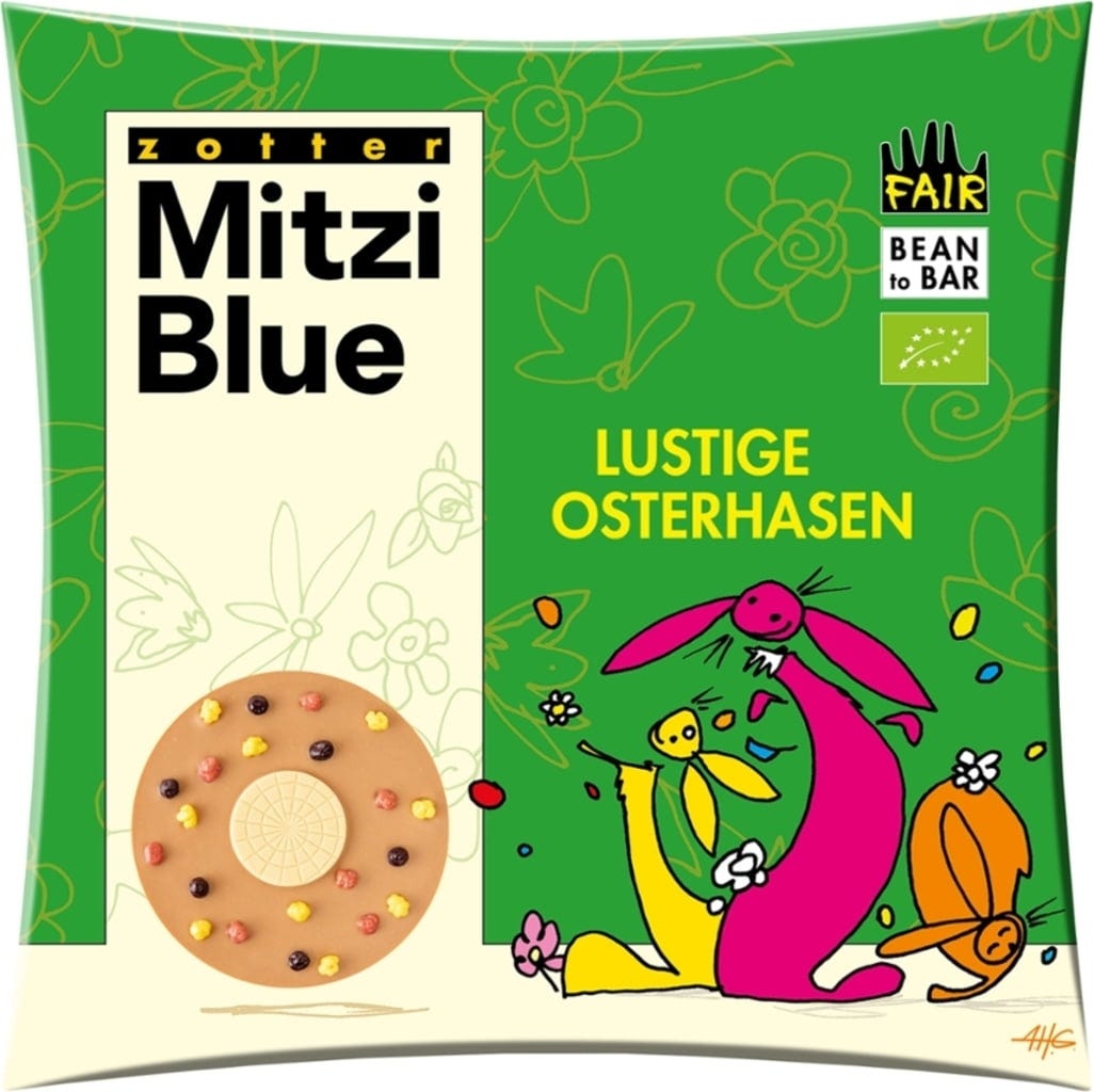 Zotter Schokoladen Bio Mitzi Blue wesołe zajączki wielkanocne, 70 g