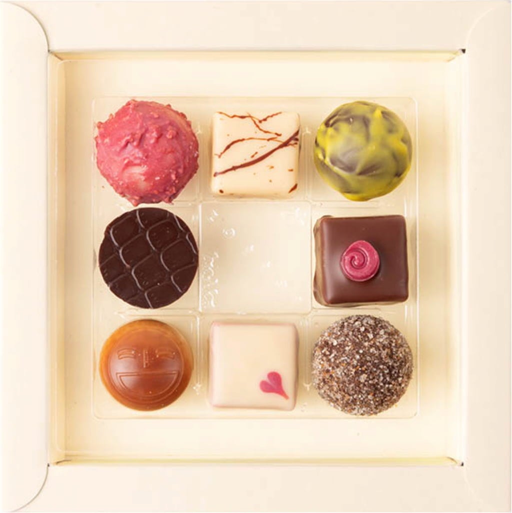 Nowocześnie zaprojektowane opakowanie zawiera 8 wspaniale świeżych czekoladek: