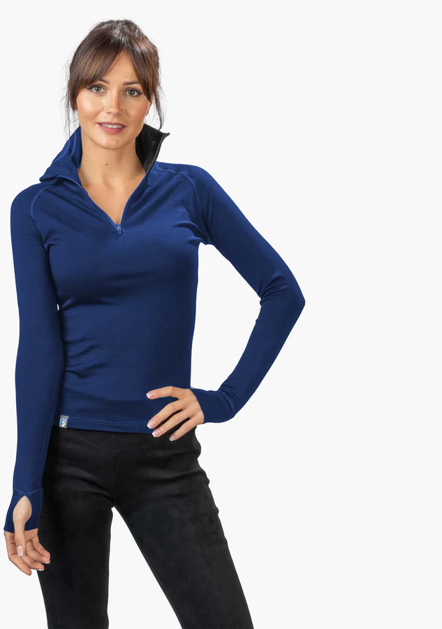 Alpin Loacker Ženska merino majica z dolgimi rokavi in polovično zadrgo, modra