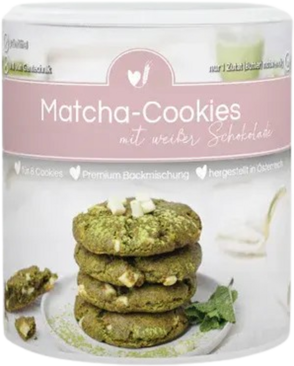 pšenična moka, 29,9 % bela čokolada (sladkor, Kakavovo maslo, Polnovredno mleko v prahu, Kakavova masa), Emulgator (sojin lecitin, aroma vanilije), rjavi sladkor, 2,4 % Zeleni čaj matcha v prahu, polno jajce v prahu, Natron