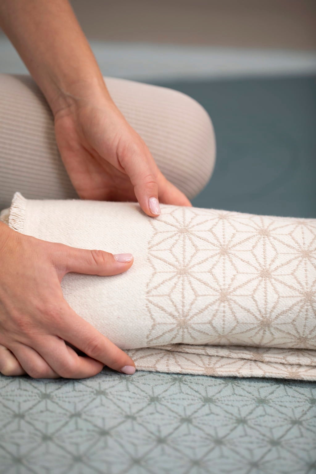 Ta zračna odeja za jogo je na koži še posebej prijetna in vam nudi najboljše udobje med vajami joge in sproščanjem ali meditacijo! Visokokakovostni material in kakovostna izdelava vam zagotavljata toplino in udobje.