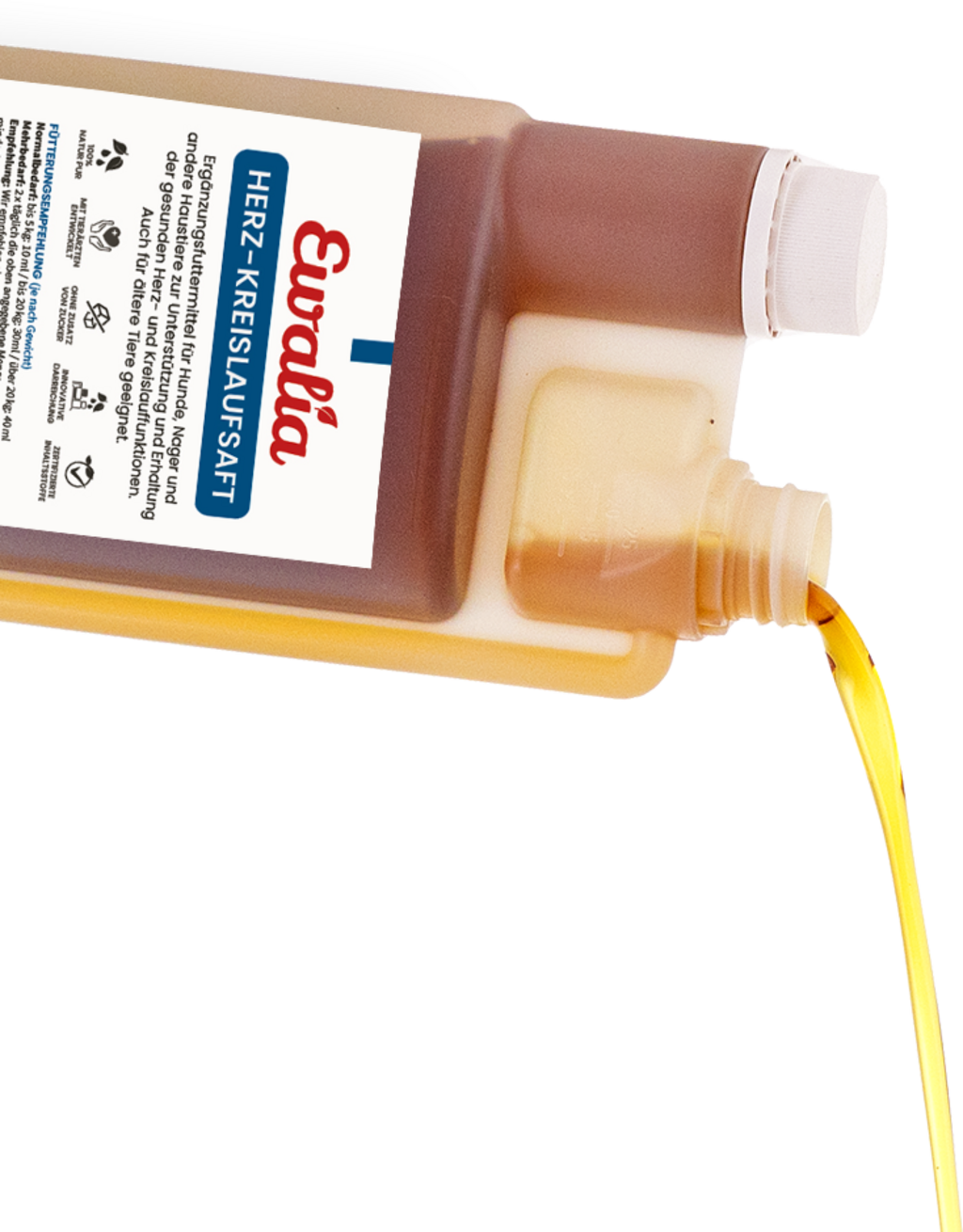 Kardiovaskularni sok za hišne ljubljenčke Ewalia z rmanom in glogom je idealen za hranjenje starejših živali ob vremenskih spremembah, vročinskih valovih in temperaturnih nihanjih. Je brez kemičnih dodatkov in lahko podpira naravno delovanje srca in prekrvavitev v primeru slabšega delovanja in velikega napora.