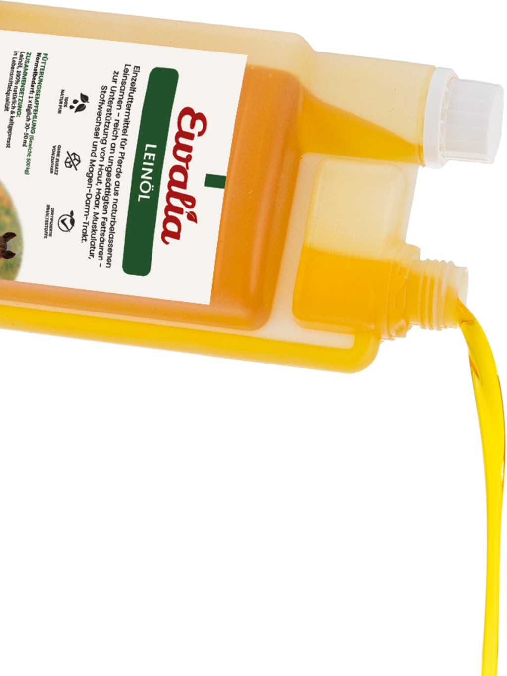 Hladno stiskano laneno olje izjemne kakovosti iz Ewalie je rastlinsko olje z dragocenimi maščobnimi spremljajočimi snovmi, bogato z nenasičenimi maščobnimi kislinami, naravnim vitaminom E in je 100 % čisto in brez dodatkov. Naravno olje iz naravnega lanenega semena je naravna izboljšava dnevnega obroka krme. LENENO OLJE je kot naravni vir energije primerno za alergike ter breje in doječe kobile, saj je količina eteričnih olj pri dodajanju krmi zanemarljivo majhna. Zaradi nizke vsebnosti beljakovin, pozitivnega učinka pri hranjenju konj, je priporočljivo kot dnevni dodatek krmi, podpira kožo, dlako, mišice, presnovo in prebavila konja!