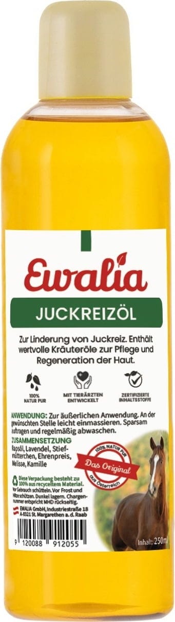 Olje proti srbenju za konje iz Ewalie, z oljem oljne ogrščice, sivko in dragocenimi zelišči, je idealno za nego in regeneracijo kože, kot ciljni repelent proti komarjem in žuželkam ter za lajšanje srbenja! Ta embalaža je narejena iz 100 % recikliranega materiala.