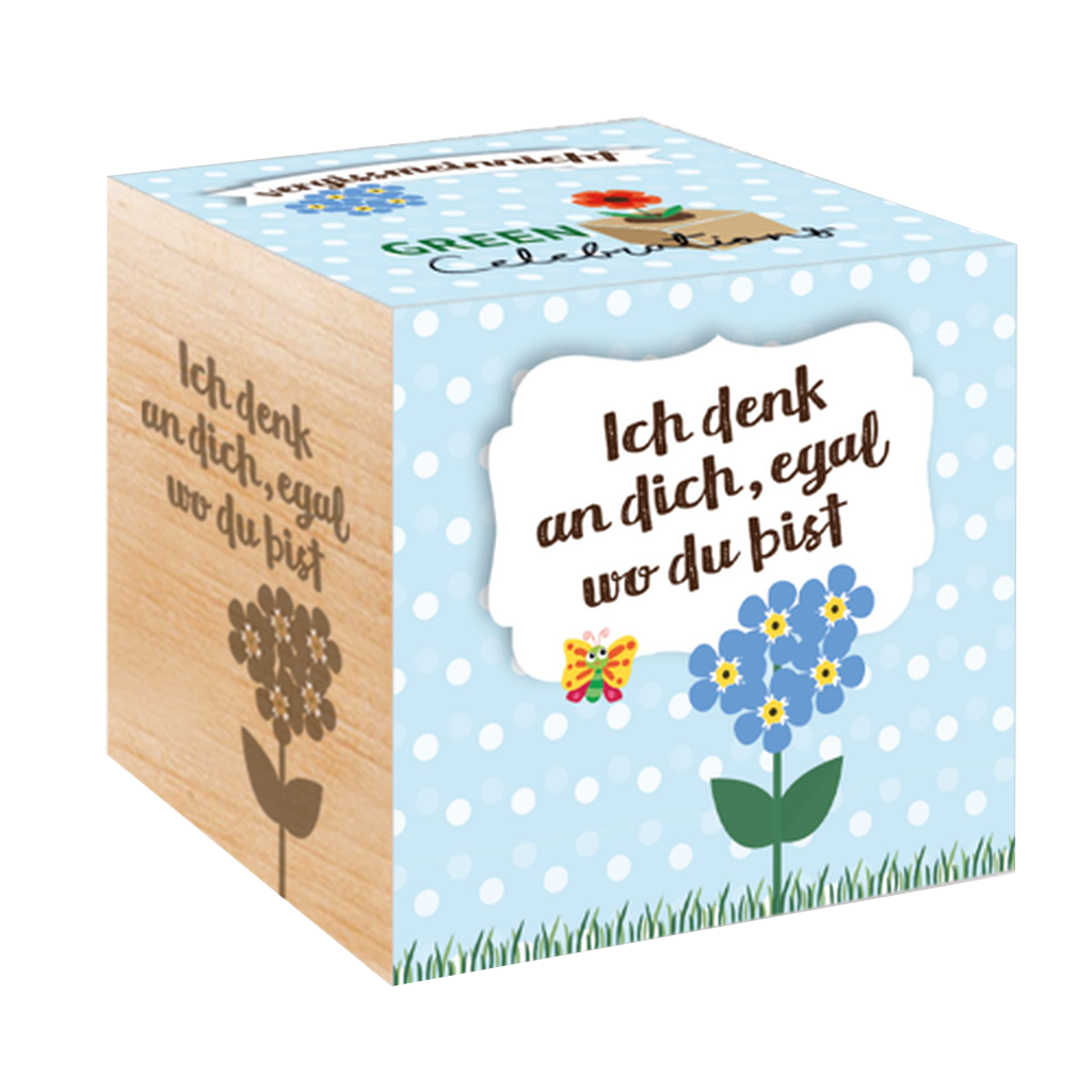 Iščete nenavadno in hkrati osebno idejo za darilo? Lesena kocka Green Celebrations "Spominčica" iz jelševega lesa z visokokakovostno gravuro je darilo iz srca, ki vsebuje rastlinska semena in poseben rastni granulat.