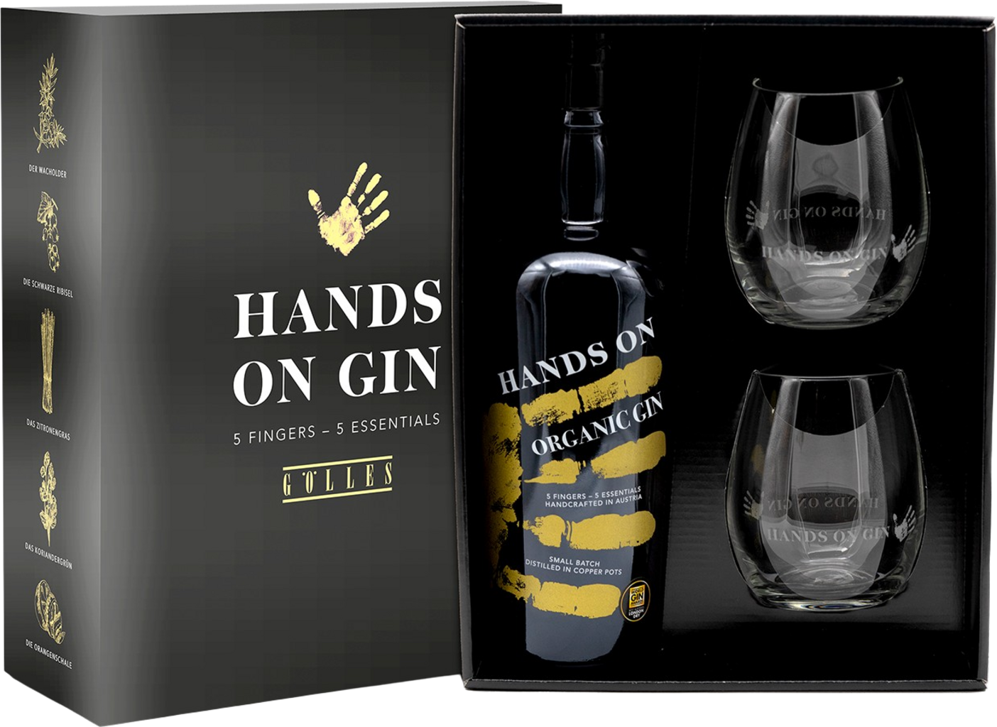 Set HANDS ON GIN vsebuje 700 ml steklenico gina HANDS ON GIN ter dva čudovita kozarca za gin in tonik. Ta edinstven in živahno-sadni destilat je proizveden izključno iz svežih sestavin.