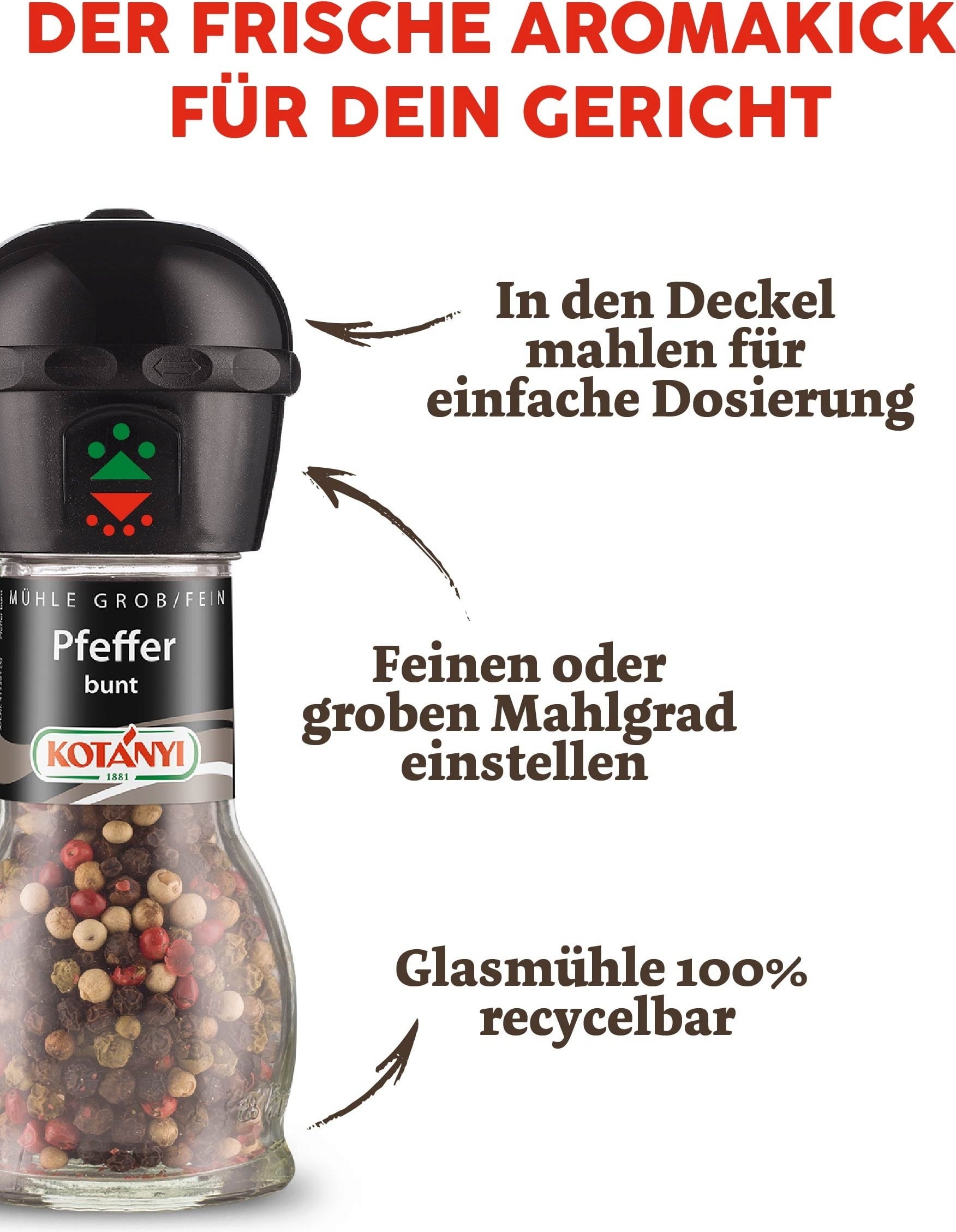 Pisan poper iz skupine Kotányi je zaklad. Popolna mešanica poudarja poseben vonj vsake sestavine. Blaga, aromatična in idealna za začinjanje, odlična za rafiniranje in okrasitev.