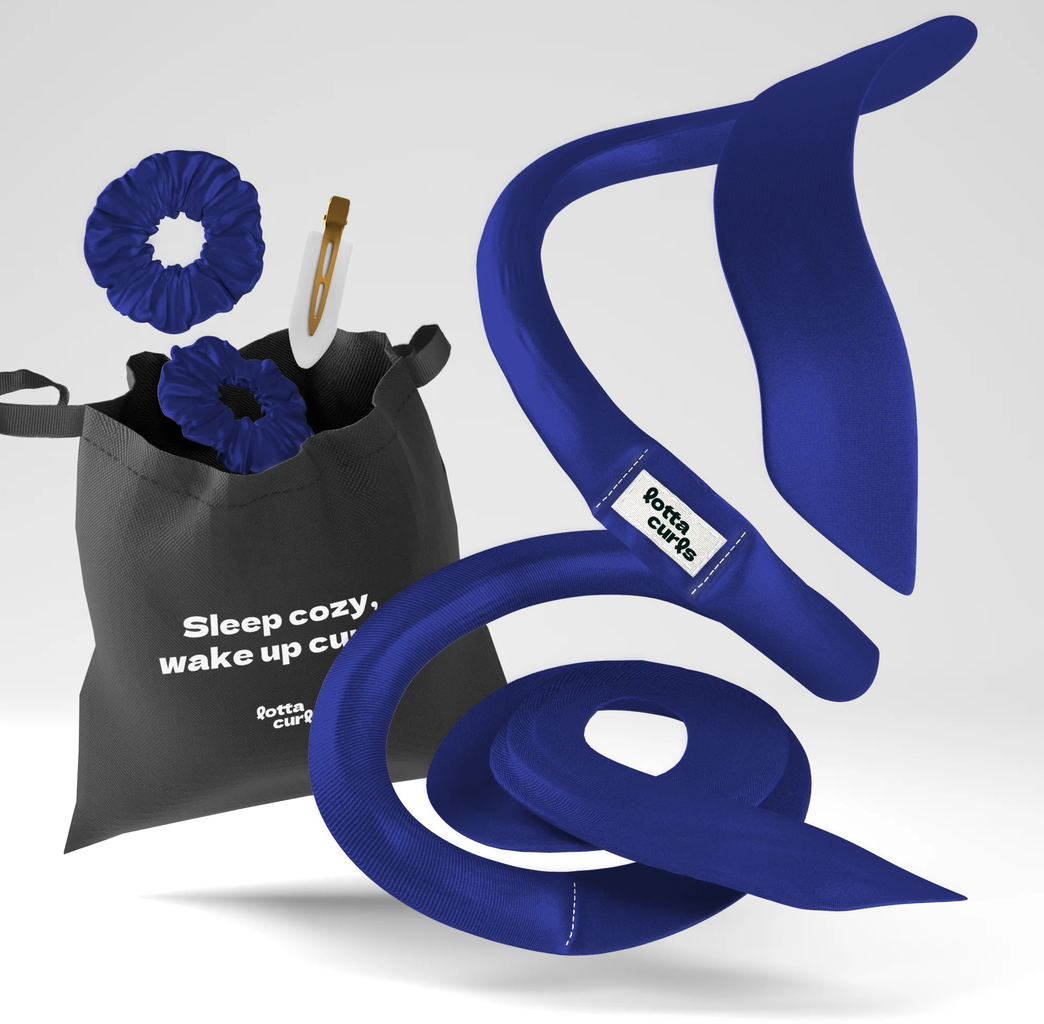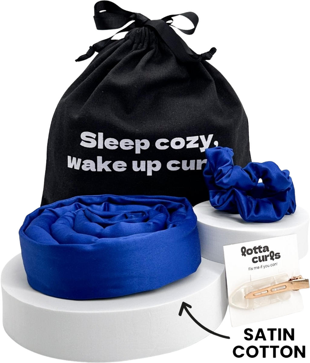 lotta curls Satin Cotton set s trakom za kodranje las, Blue