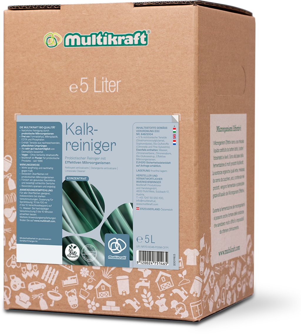 Čistilo za vodni kamen eMC je zelo varčno za uporabo, svojo učinkovitost proti vodnemu kamnu pa dolguje naravnemu učinku citronske kisline in probiotičnih bakterij, ki zlahka odstranjujejo obloge vodnega kamna in zagotavljajo sijočo čistočo. Kot poseben bonus so efektivni mikroorganizmi ponovno aktivni, ko se pojavi nova umazanija, zato čistoča traja dlje.