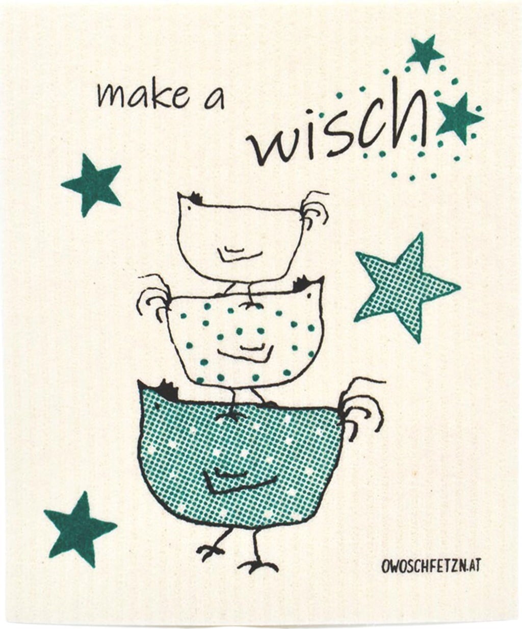 OWOSCHFETZN Gobasta krpa "Kokoš Berta - Make a wisch", Turkizna
