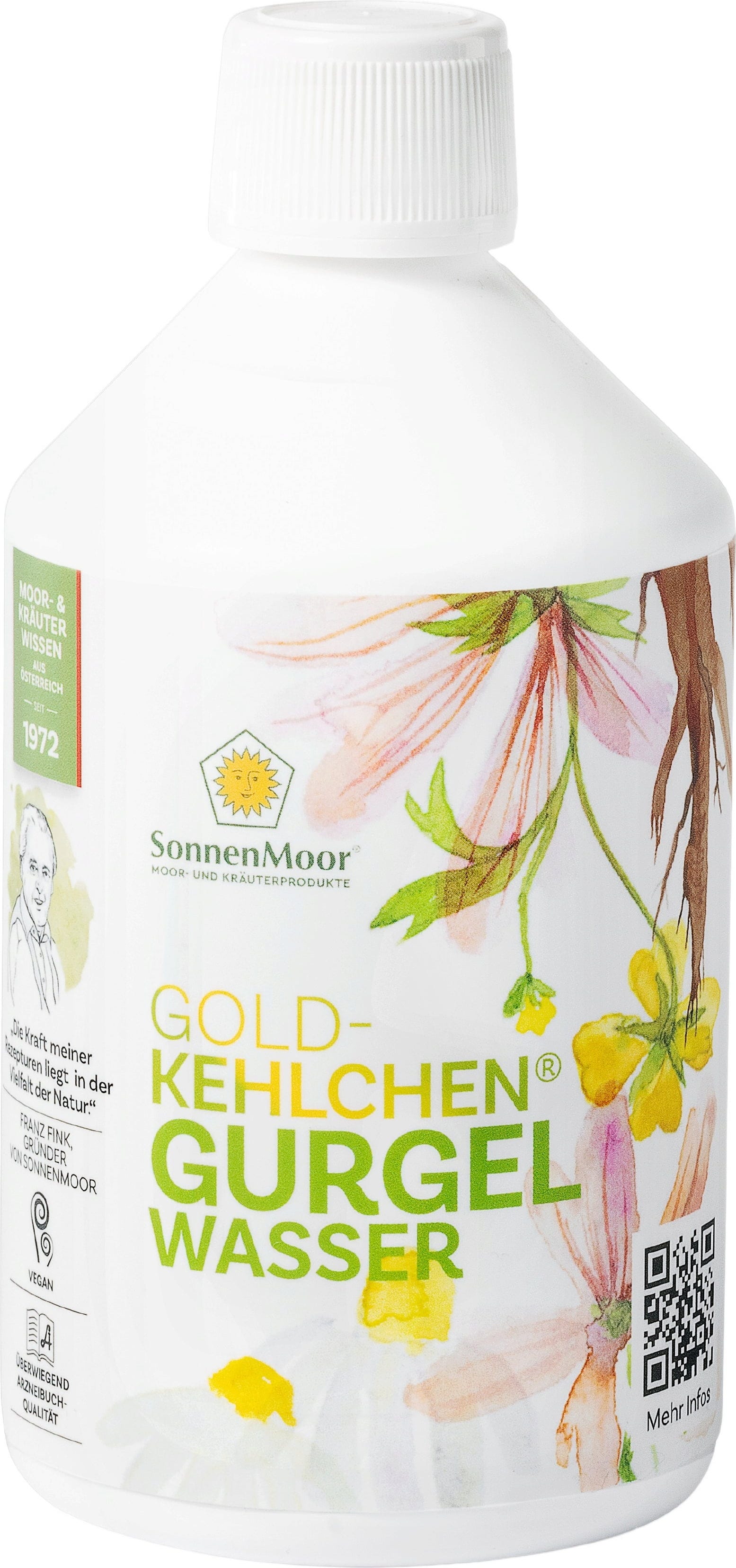 Voda za grgranje znamke SonnenMoor je tradicionalni izdelek iz Avstrije, ki je bil posebej razvit za vsakodnevno ustno higieno. Formula temelji na vodnem izvlečku srčne moči, kamilice, gozdnega slezevca in korenine sladkega korena. Ta kombinacija čisti ustno votlino ter skrbi za grlo in žrelo. Ker izdelek skrbi za dlesni in ustno sluznico, je idealen dodatek k vsakodnevni rutini ustne higiene.