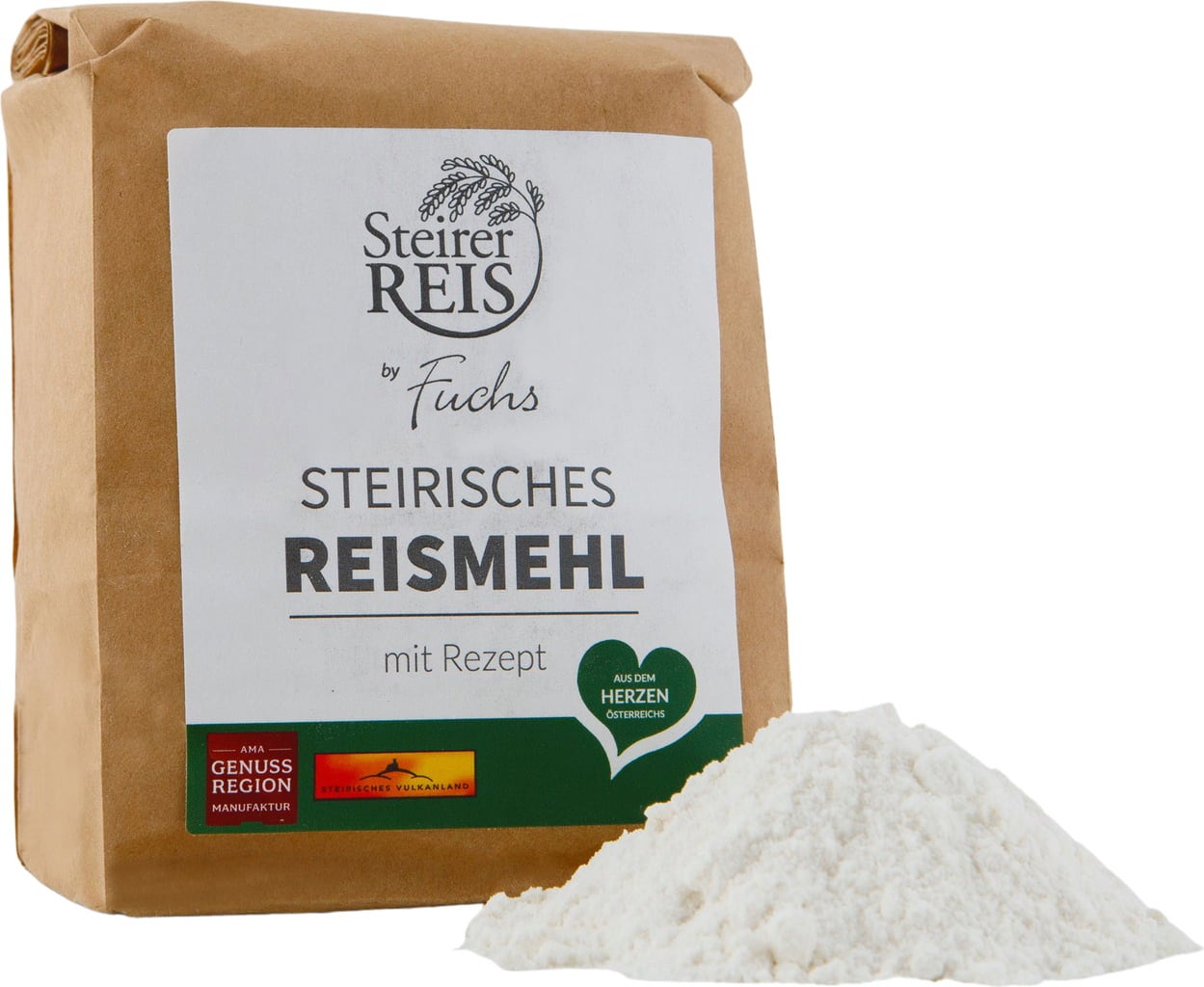 Brezglutenska riževa moka iz štajerske vulkanske dežele v Avstriji je odlična alternativa običajni pšenični moki. Moka je brezglutenska in uporabna na več načinov. Idealna je za vezanje omak in juh, pogosto pa se uporablja tudi za otroško hrano. Uporablja se lahko tudi za peko kruha, piškotov in peciva. Slastna sprememba so tudi riževe palačinke.