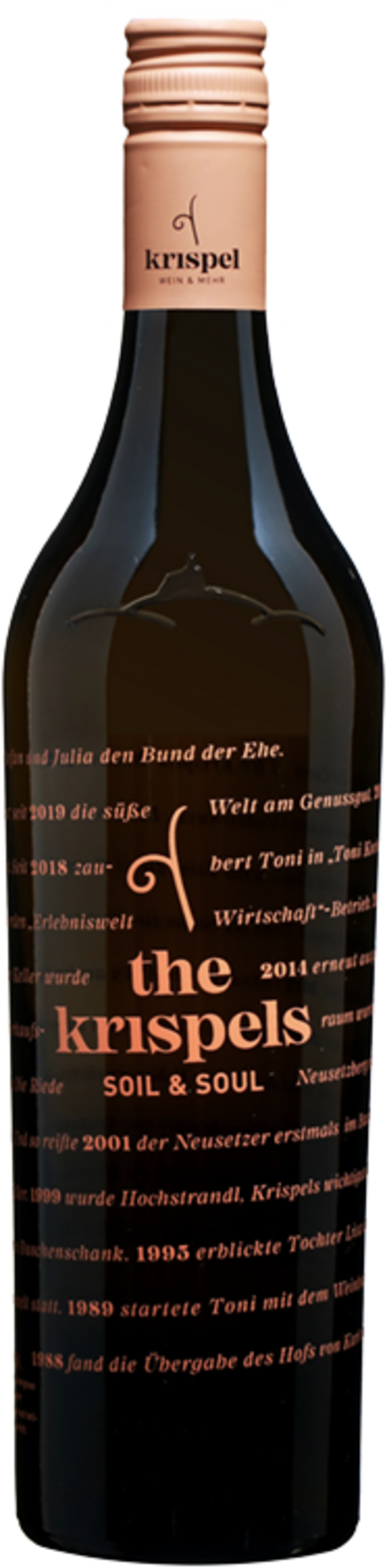 Cuvée belega vina „The Krispels“ čudovito združuje družinsko zgodovino vrhunske vinske kleti z njihovo globoko filozofijo o vinu, izvoru in zemlji. Ujet je v čudovito potiskano steklenico, ki nosi zapisano besedilo njihove zgodbe.