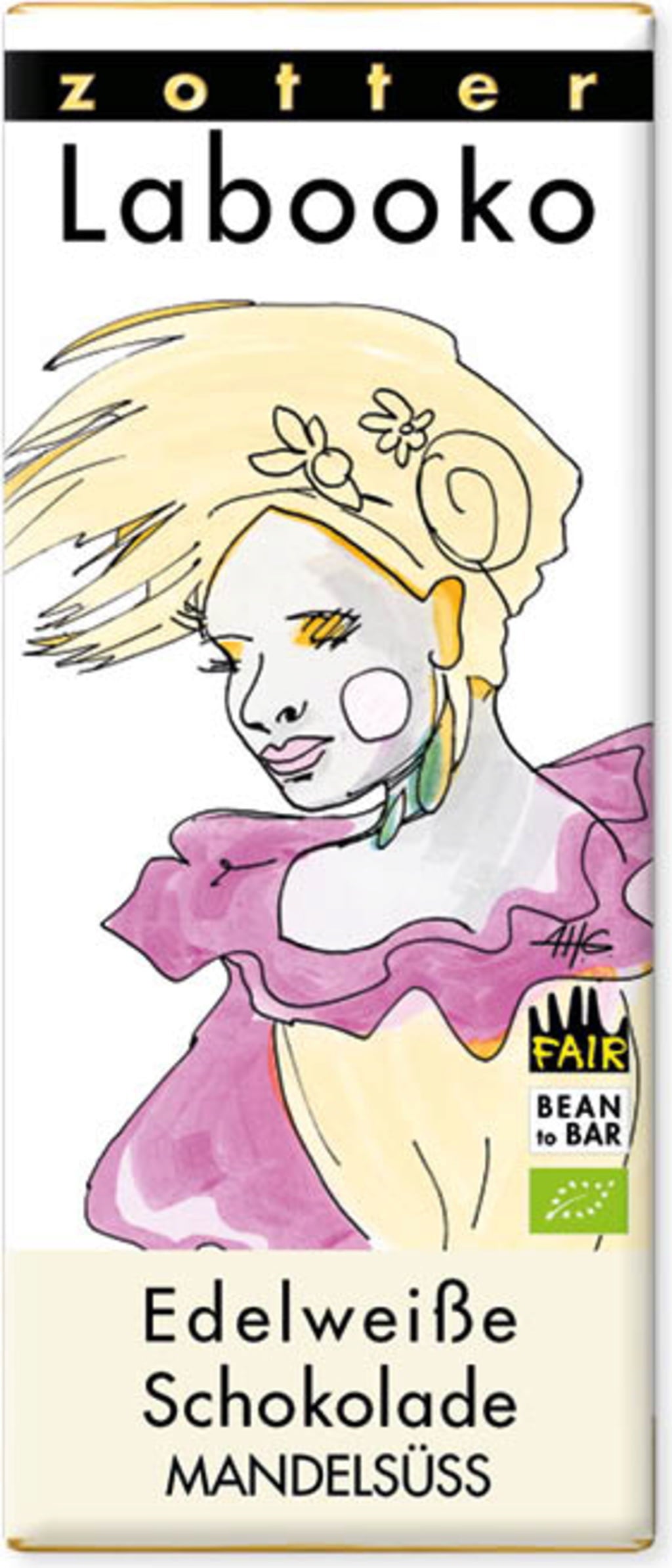 Zotter Schokoladen Bio čokolada Labooko - "bela čokolada in mandlji", 70 g