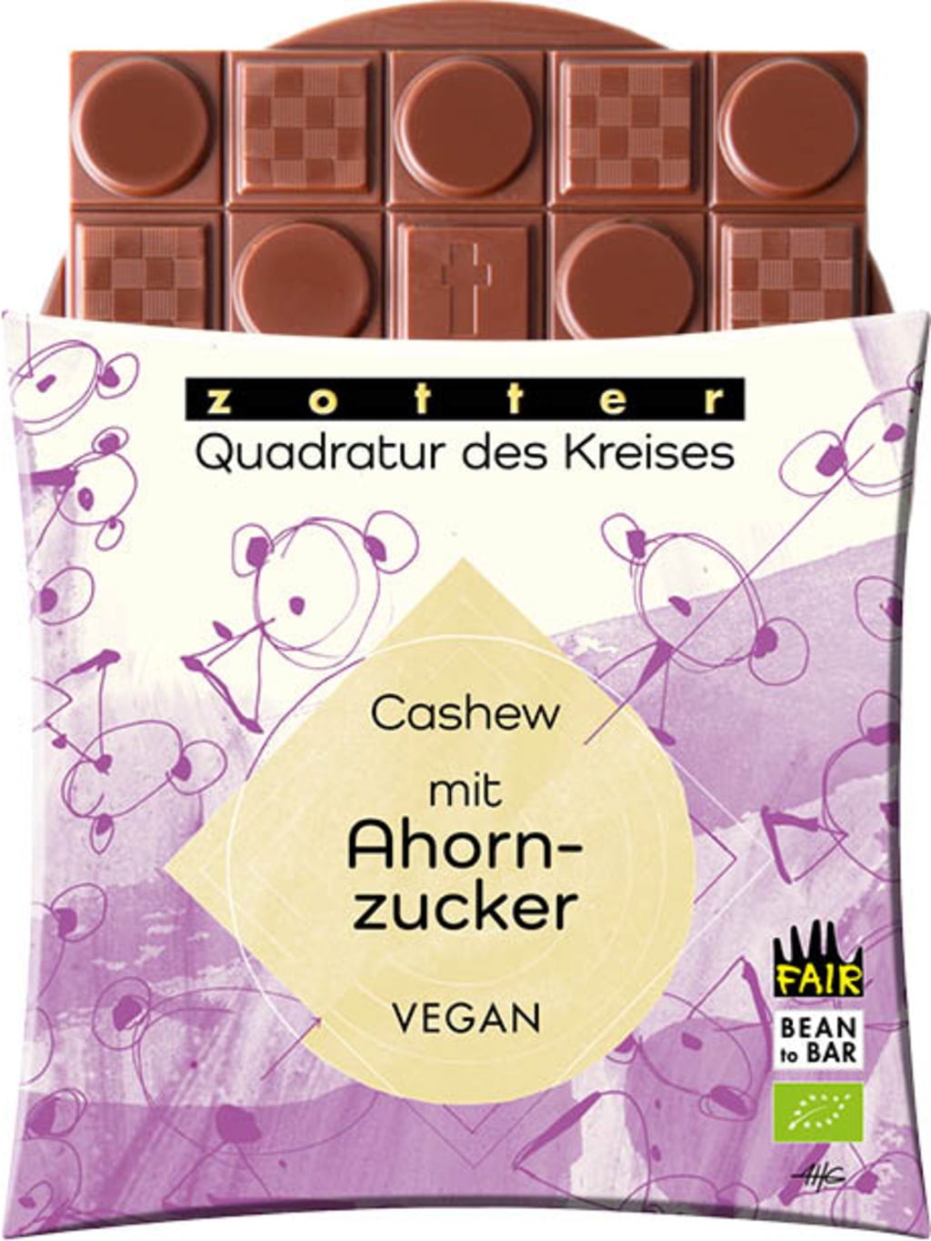 Zotter Schokoladen Bio Quadratur des Kreises - indijski orešček z javorjevim sladkorjem, 70 g