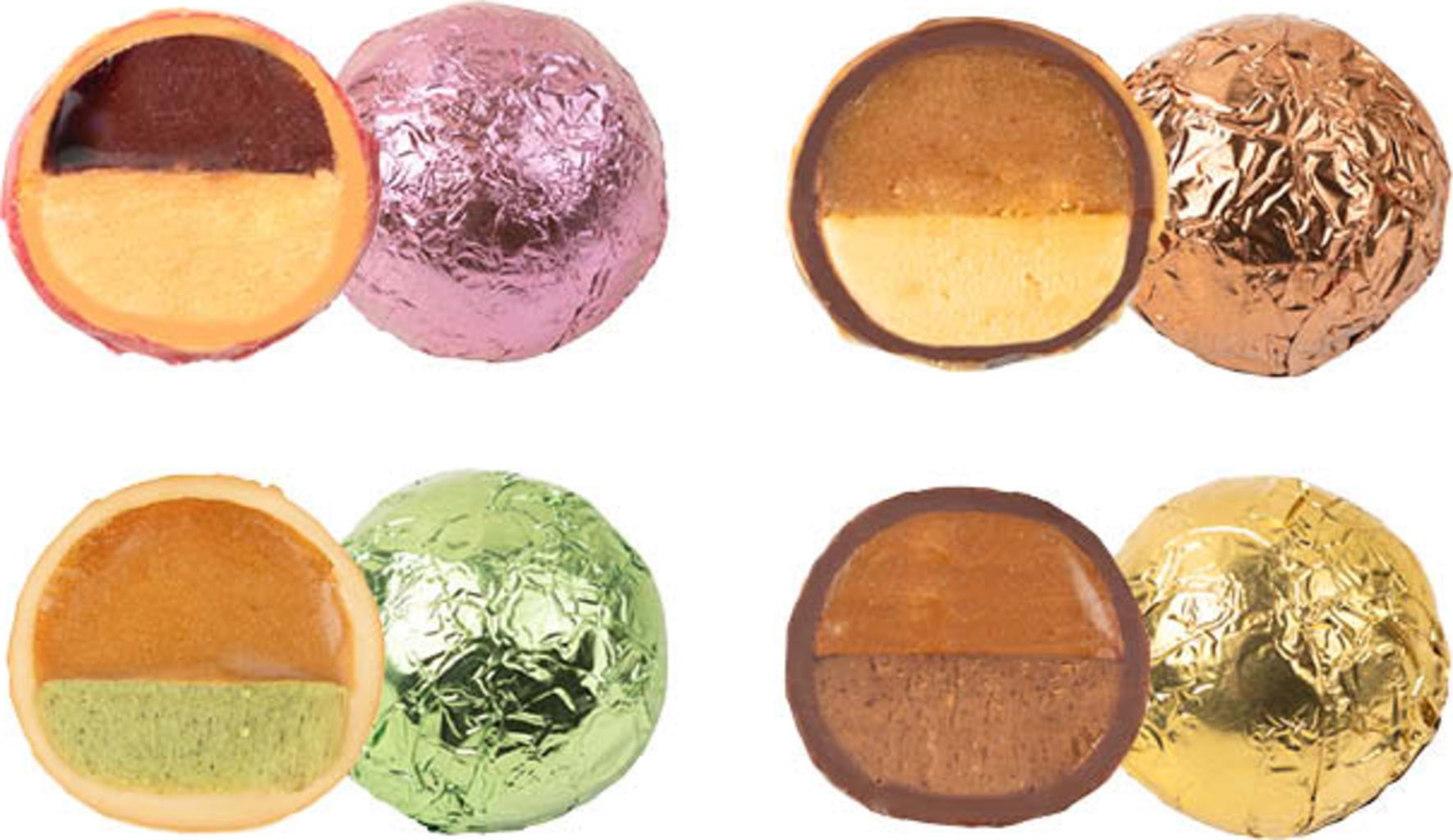 Naj vas te čokolade presenetijo, saj je karamela zdaj dobila novo, barvito in vznemirljivo interpretacijo! Te velike čokoladne kroglice so popolna paša za oči in idealno darilo.